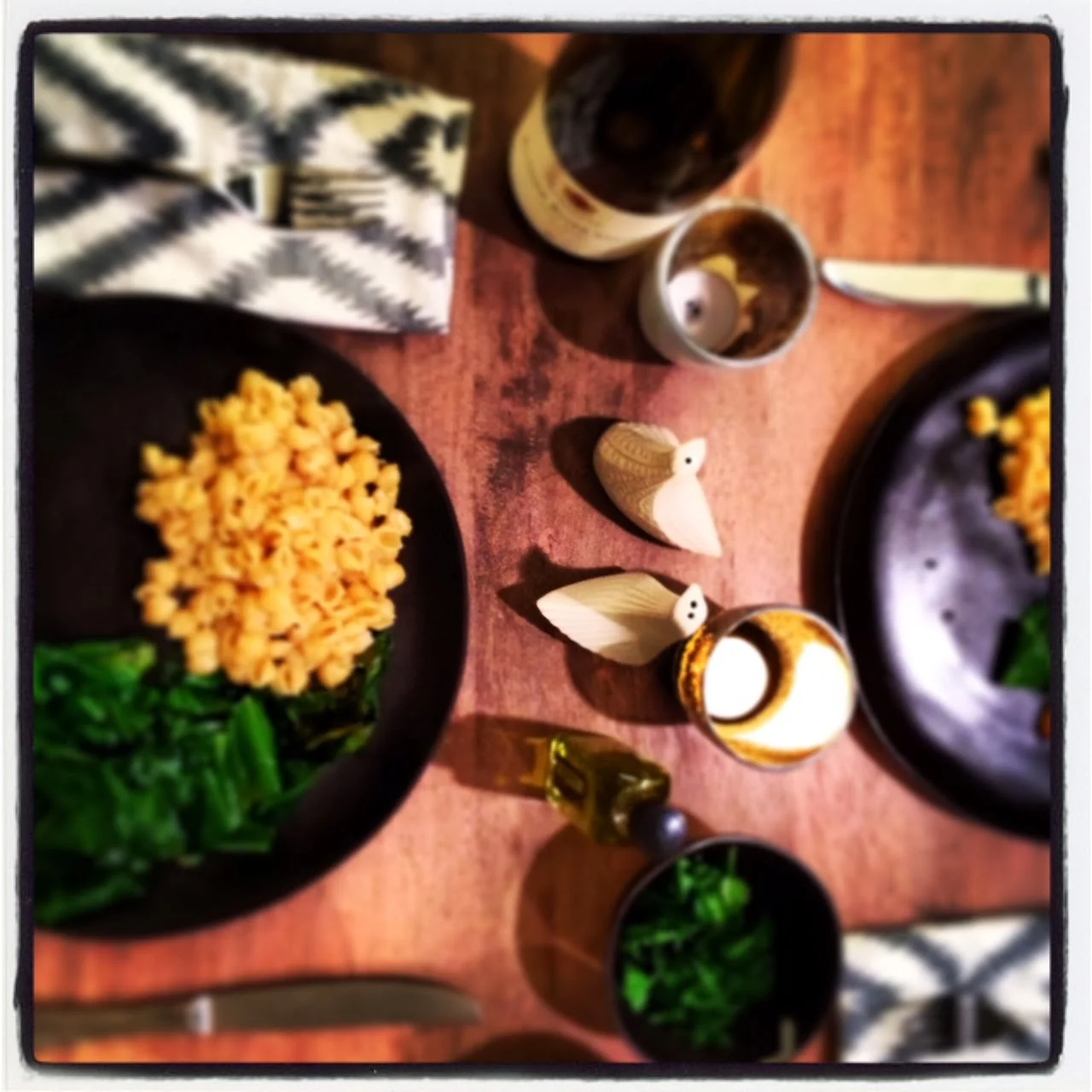 Both iterations were tasty. We served the pasta with a side of sautéed collard greens to cut the richness. I have to say, I think top-your-own-mac-and-cheese could be the next best thing.