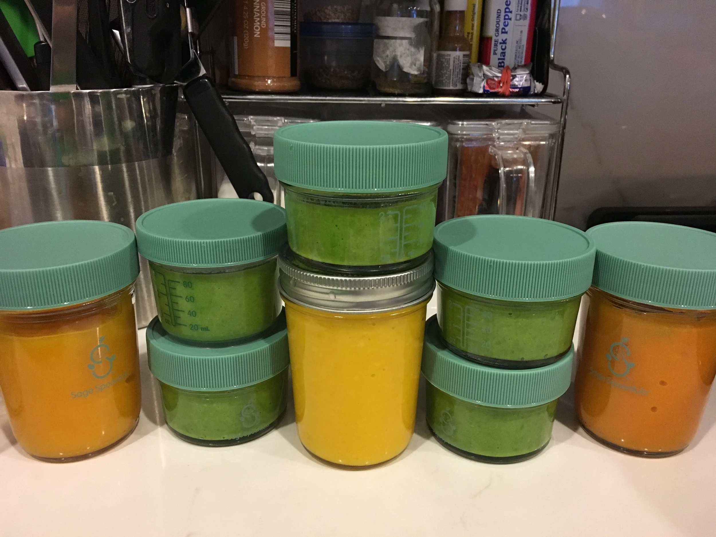 I'm sure I will have more to say as I get the hang of feeding, but in the meantime, I thought I would share an idea my friend and neighbor had, which was to host a make-your-own-baby-food get together. She invited a few moms and babies, and we each brought a vegetable to steam (carrots, butternut squash, sweet potatoes, and peas). We ordered food, drank a little wine, and steamed the crap out of vegetables, which we all split and froze to bring to our respective homes. It was a fun way to spend a Saturday while Will and my brother went to see a Broadway play (yes, you read that correctly), and now I have a freezer full of winter goodness for Marin.